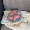 This plush cat paw mini shoulder bag features a soft, textured polyester material with a compact 6-inch height and 4-inch width, ideal for daily use. Designed with a zipper closure, internal zippered pocket, and a single shoulder strap, it offers reliable storage and easy access. Perfect for streetwear styling, it suits casual outings and complements various outfits. Wipe clean with a damp cloth for maintenance.