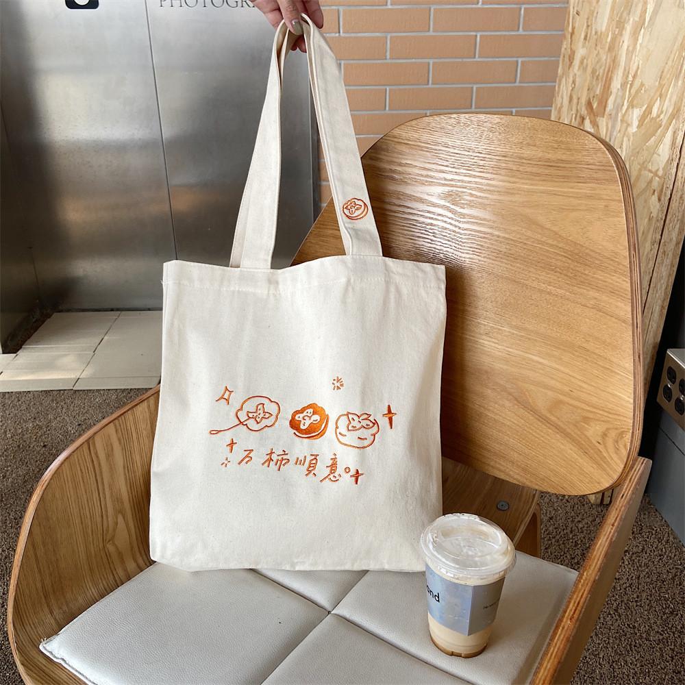 Stylish Embroidered Canvas Tote Bag For Trendy Girls With Large Capacity Soft Fabric