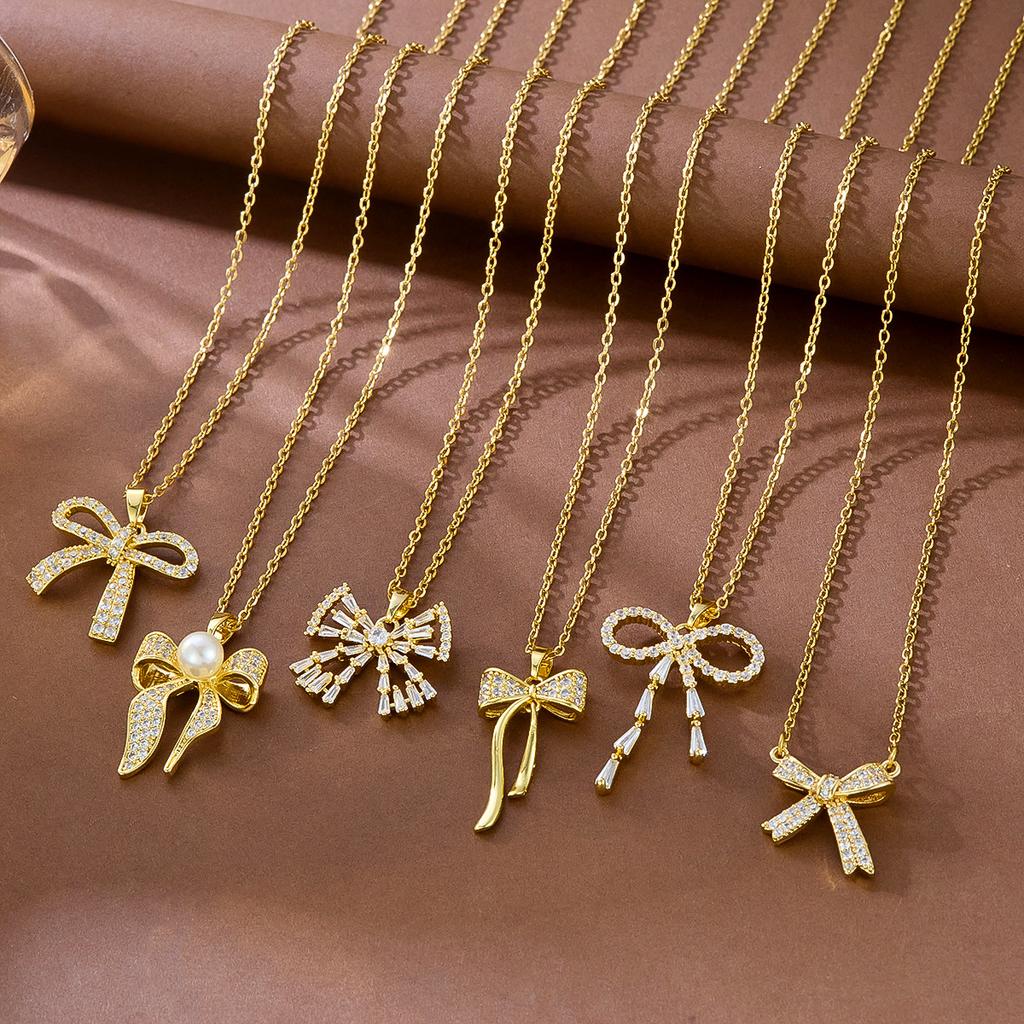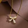 Bow-encrusted Diamond Super Flash Necklace Female, French Light Luxury Niche Design Sense Cold Wind Versatile Collarbone Chain