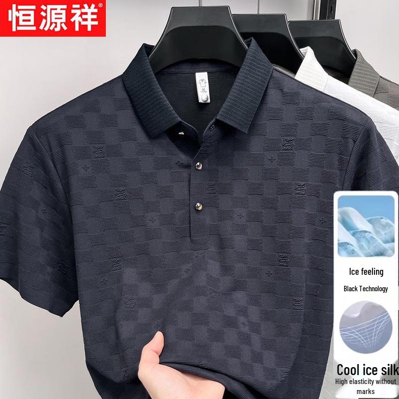 Hengyuanxiang Men's Cooling Ice Silk Jacquard Short Sleeve T-Shirt