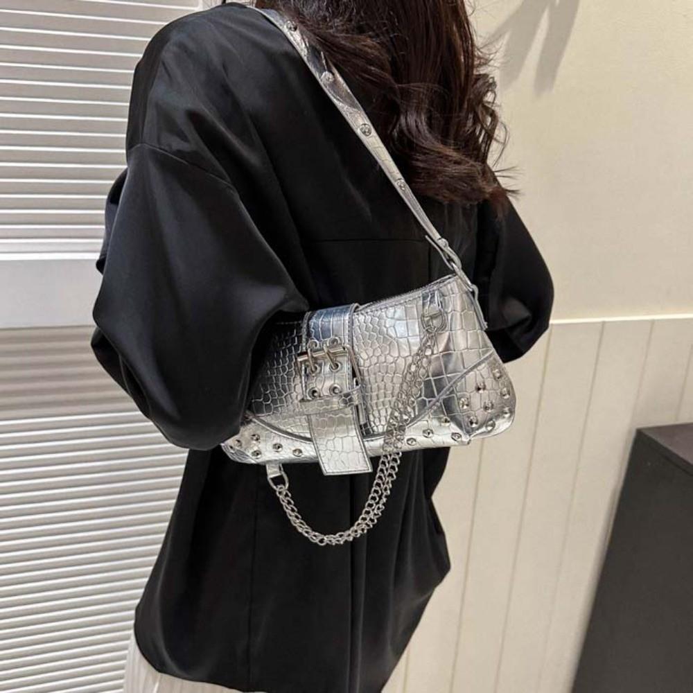 Y2K Crocodile Underarm Bag Korean Style Texture Shoulder Bag Shopping PU Rivet Chain Handbag Girls