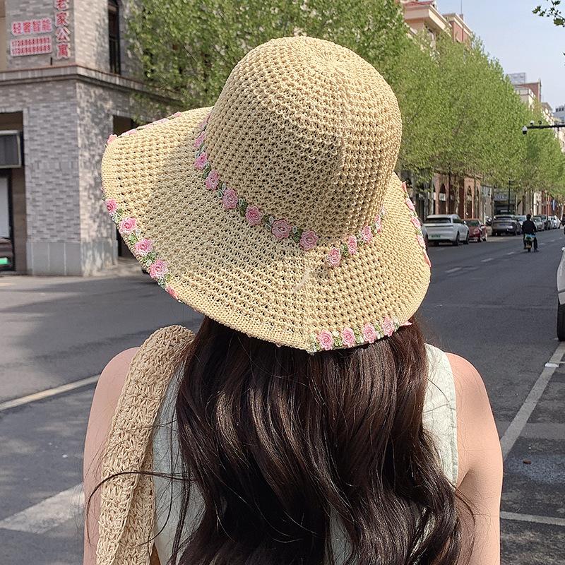 Color:D-459Beige and pink floral straw hat,D-459Khaki flowered straw hat,D-459Beige and blue floral straw hat
