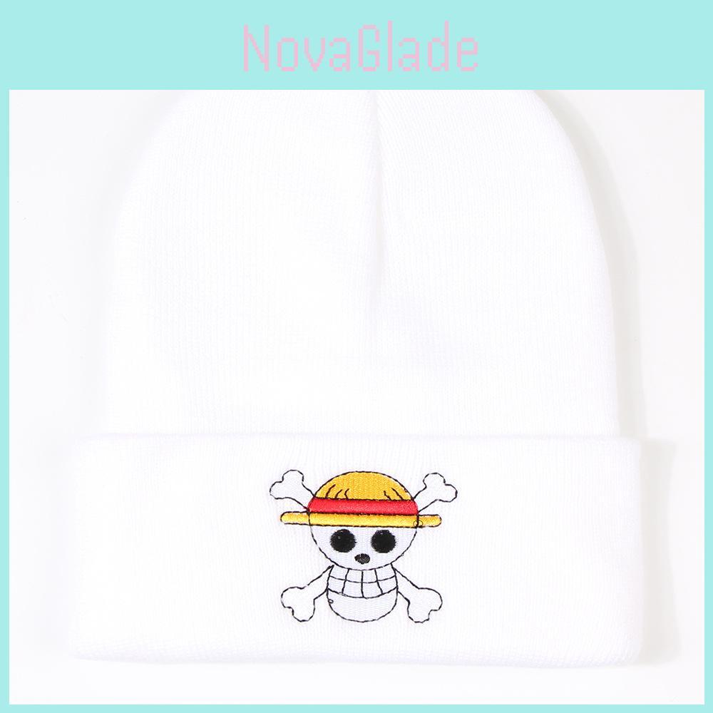 New Cosplay Anime One Piece Skull Knitted Hat Warm Street Dance Beanie Men Women Autumn Winter Hat Black Gray