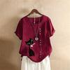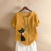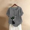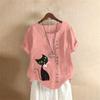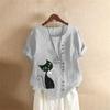Summer Oversized Cotton and Linen Short-sleeved T-shirt, Cotton and Linen Cat Printed Oversized Women's Clothing