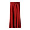 New In 2026 Spring Summer Solid Color Satin Long Skirt For Women High Waist Lace-Up Fashion Elegant Faldas