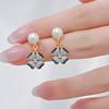 Chinese Enamel Freesia Pearl Tassel Earrings - Four-Leaf Clover Silver Studs for Women
