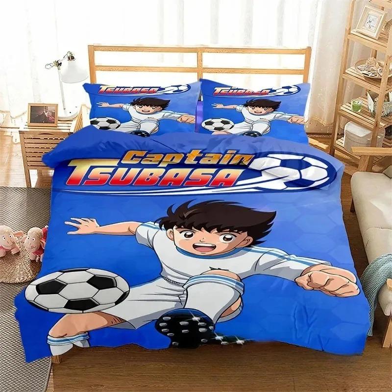 Comforter Cartoon Football Captain Tsubasa Bedding Set Adult Boys Girls Bedroom Decoration Single Double Size
