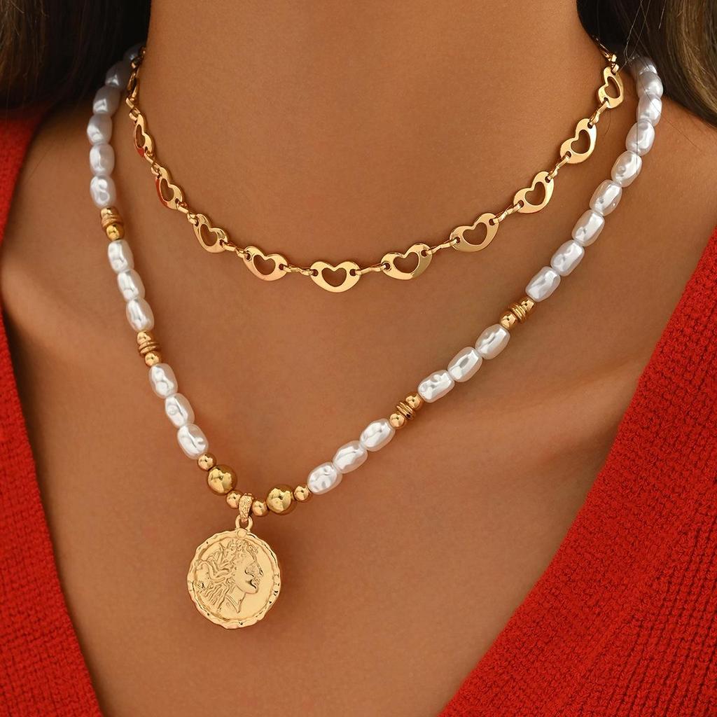Luxury Multi-layer Faux Pearl Beaded Necklace with Human Head Pendant