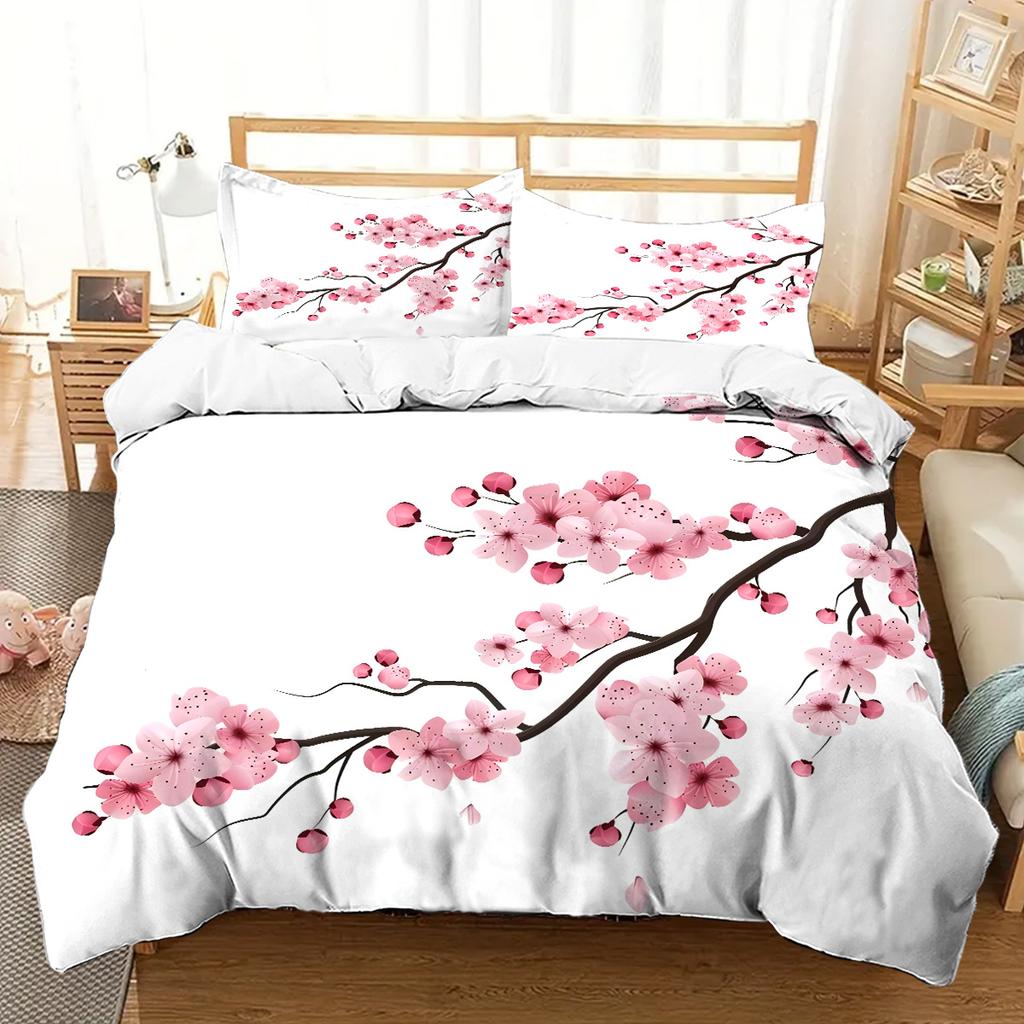 Comforter Japanese Pink Cherry Blossoms 3D Printed Set Fashion Art Exquisite Bedding Set Home Textiles S