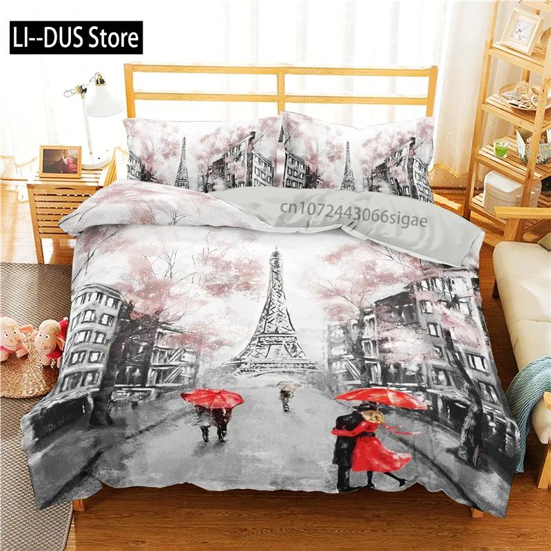Comforter Eiffel Tower King Size Paris Tower Bedding Set Microfiber French Style Home Decor Grey Cityscape