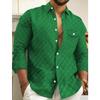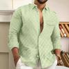 Spring and Autumn New Men's Casual Tops Plaid Jacquard Long Sleeve Lapel Shirt