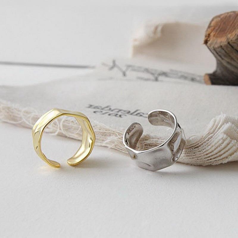 Retroirregular Concave and Convex Wide Ring Casualretro Square Wide Edge Open Ring