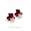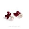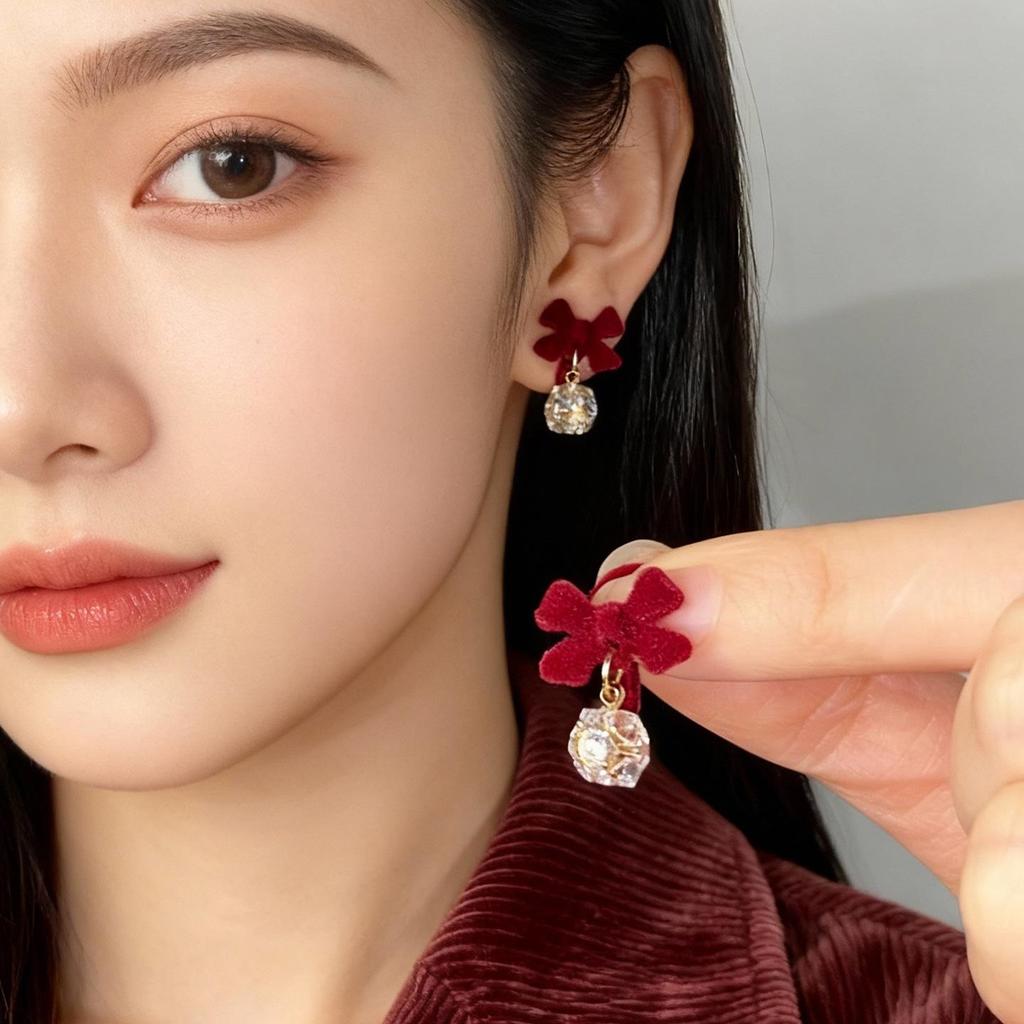 New Year Red Bow Rhinestone Ear Cuff: No-Piercing Chinese-Style Flocking Earring