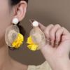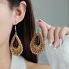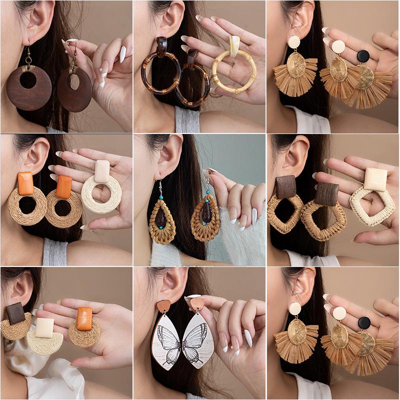 European Retro Geometric Raffia Earrings: Vacation-Style Wooden Hollow Long Accessories for Women
