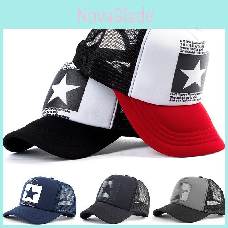 Stylish Mesh Baseball Cap For Men And Women With Big Star Print And Adjustable Fit