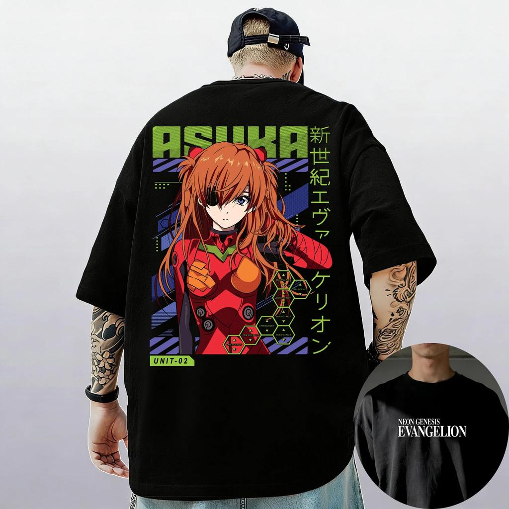 Neon Genesis Evangelion Asuka Unit-02 Anime Print T-Shirt | Double-Sided Unisex Cotton Casual Short Sleeve Streetwear Top