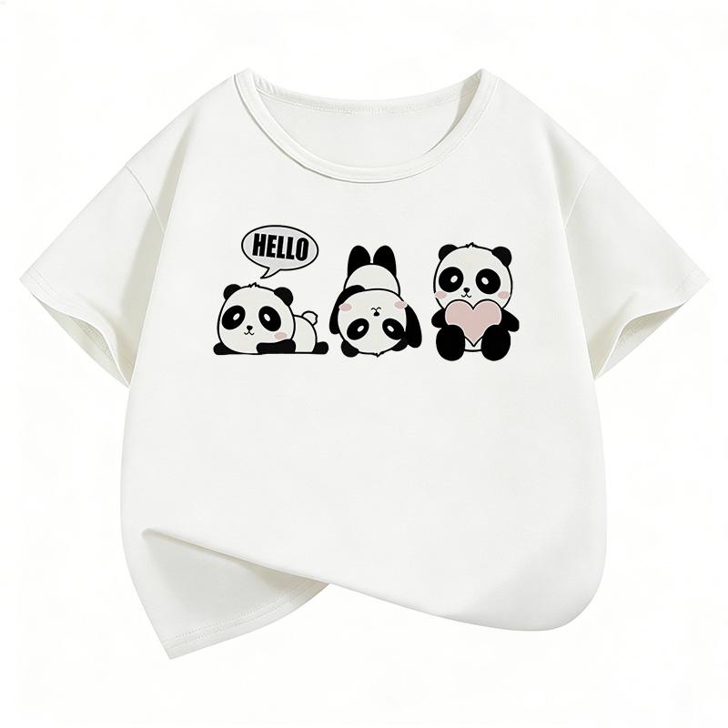 Cute and Fashionable Boys' and Girls' Summer and Spring Casual Tops T-shirts Short-sleeve Panda Funny T-shirt Animal Children's T-shirt