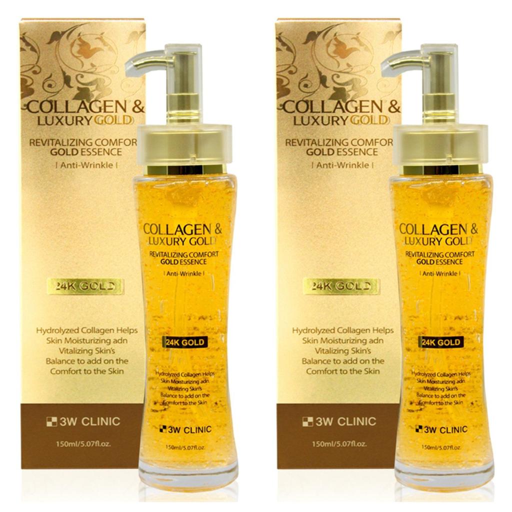 Experience the ultimate skin revival with the 3W Clinic Collagen & Luxury Gold Revitalizing Comfort Gold Essence. Infused with visible 24K gold flakes and Hydrolyzed Collagen, this luxurious anti-aging serum melts deeply into the skin to improve elasticity and visibly reduce the appearance of fine lines. Its highly concentrated, fast-absorbing formula instantly restores your skin's natural moisture balance, leaving a radiant, youthful glow without any sticky residue. This incredible value set includes two generous 150ml bottles, ensuring long-lasting, premium skincare right at home.