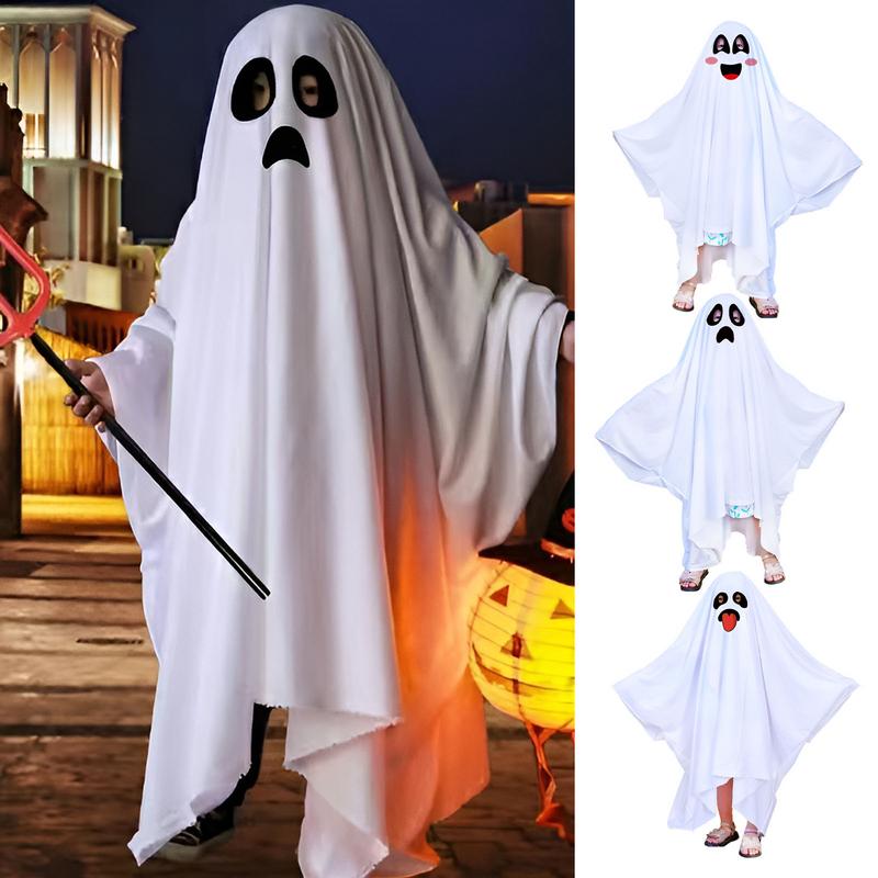 Ghost Costume For Kids White Ghost Halloween Poncho Cosplay Outfits For Boy Girl Halloween Fancy Dress Ghost Costume For Boy