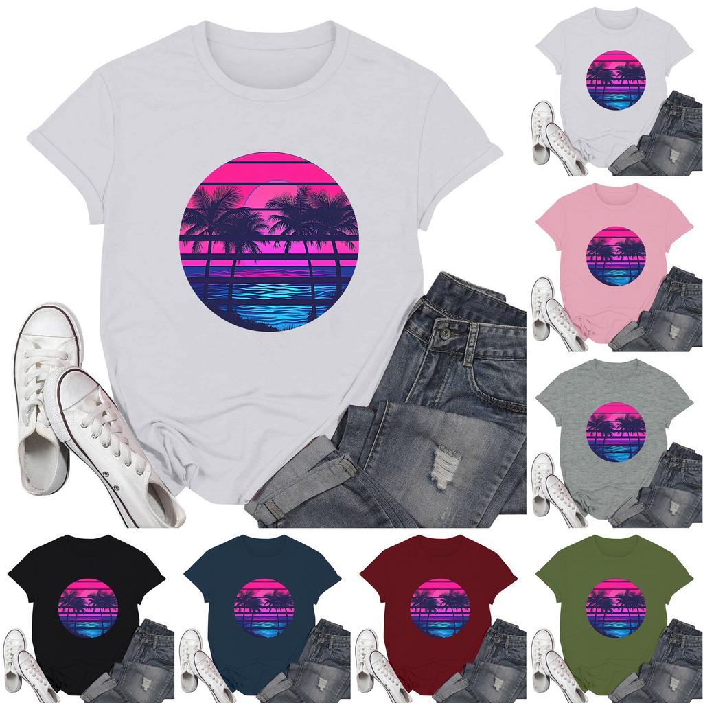Women's Fashion Casual Printed Short Sleeve Round Neck Pullover Tops