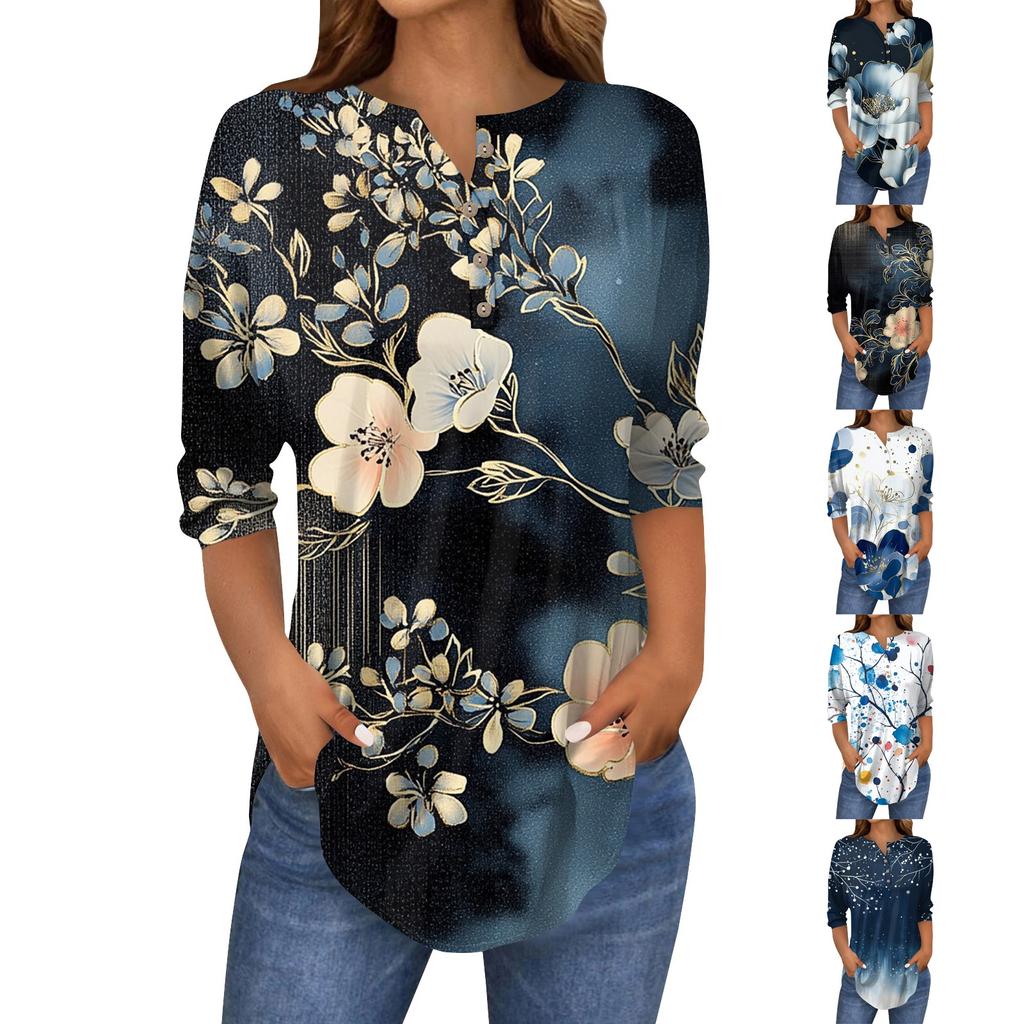 Women's Fashion Loose Button Collar Print 3/43/4 Sleeve T-Shirt Tops Pullover Description: 1. [Fabric]: High quality imitation cotton material, Round neck long sleeves, overall clothing fabric breathable, very comfortable, very smooth for the skin, very comfortable to wear all day long 2. [Design]: Women's shirt top, casual top, loose cut, comfortable material, women's fashion shirt suitable for work, vacation, beach, school, outing, party, home and daily wear 3. [Matching]: Pair with tight pants, jackets, jeans, capris, pants, or skirts in spring or summer to make you more elegant and feminine 4. [Size]: The fabric of this product is elastic. Before making a purchase, please carefully check your size and make a careful selection 5.[Cleaning and Care]: It is recommended to clean with water temperature below 30 degrees Celsius or cold water to avoid fading. Different monitor colors may have slight color differences, please do not mind Product information: Gender: Female Occasion: leisure Material: Polyester Pattern type: printing : casual Length: regular 3/4 sleeve Thickness: standard Cleaning method: wash hands in cold water, hang or dry You will get: 1 women's tops