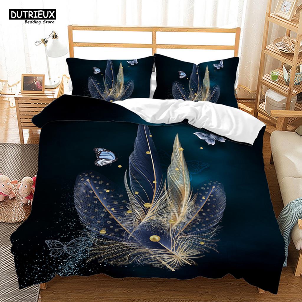 Comforter Luxury Feathers Bedding Set Colorful Soft Animal Feather King Queen Single Size S For Women
