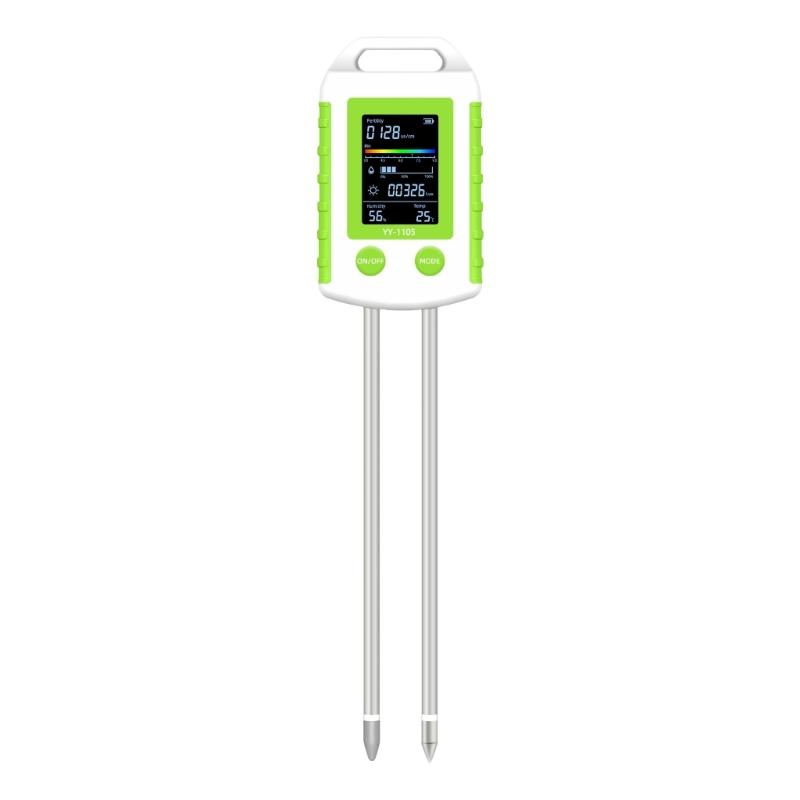 The YY1105 soil tester features double probes for fast and accurate measurement of soil moisture, temperature, light intensity, and more, providing comprehensive soil analysis.