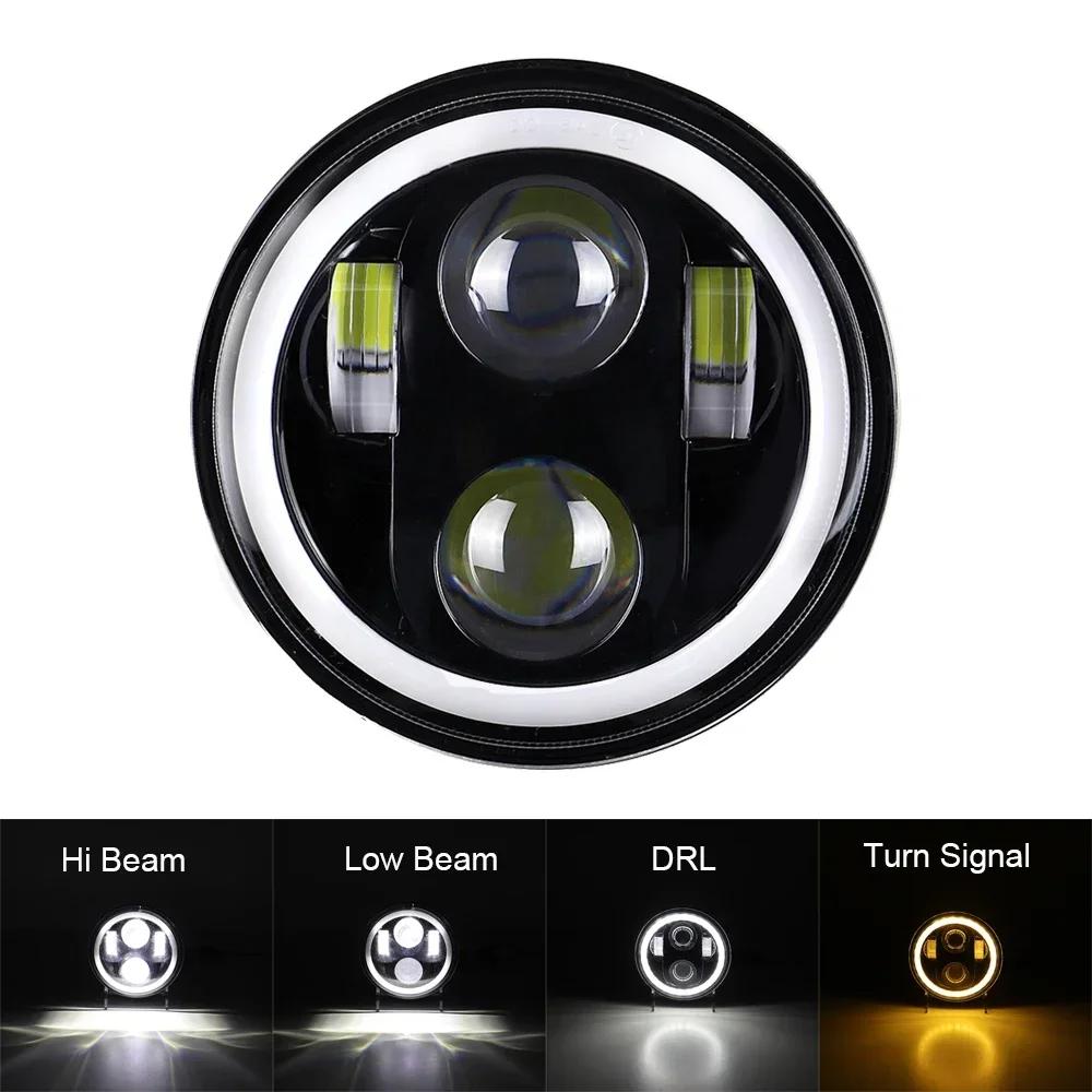 LED Headlight Projector Halo Ring Motorcycle High Low Beam DRL Turn Signal Light for 1pcs 5.75 Inch