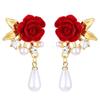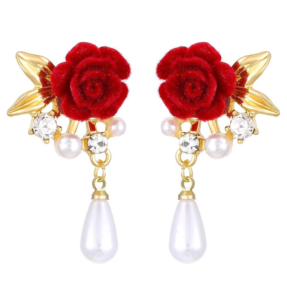 1Pairs Rose Flower Decorative Earrings Red Velvet Rose Pearl Stud Earrings Wedding Jewelry