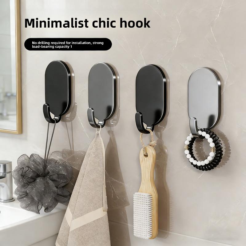 Non-drilled Stainless Steel Hook with Strong Adhesive for Heavy Load. Bathroom and Toilet Hanging Item Adhesive Wall Mount.