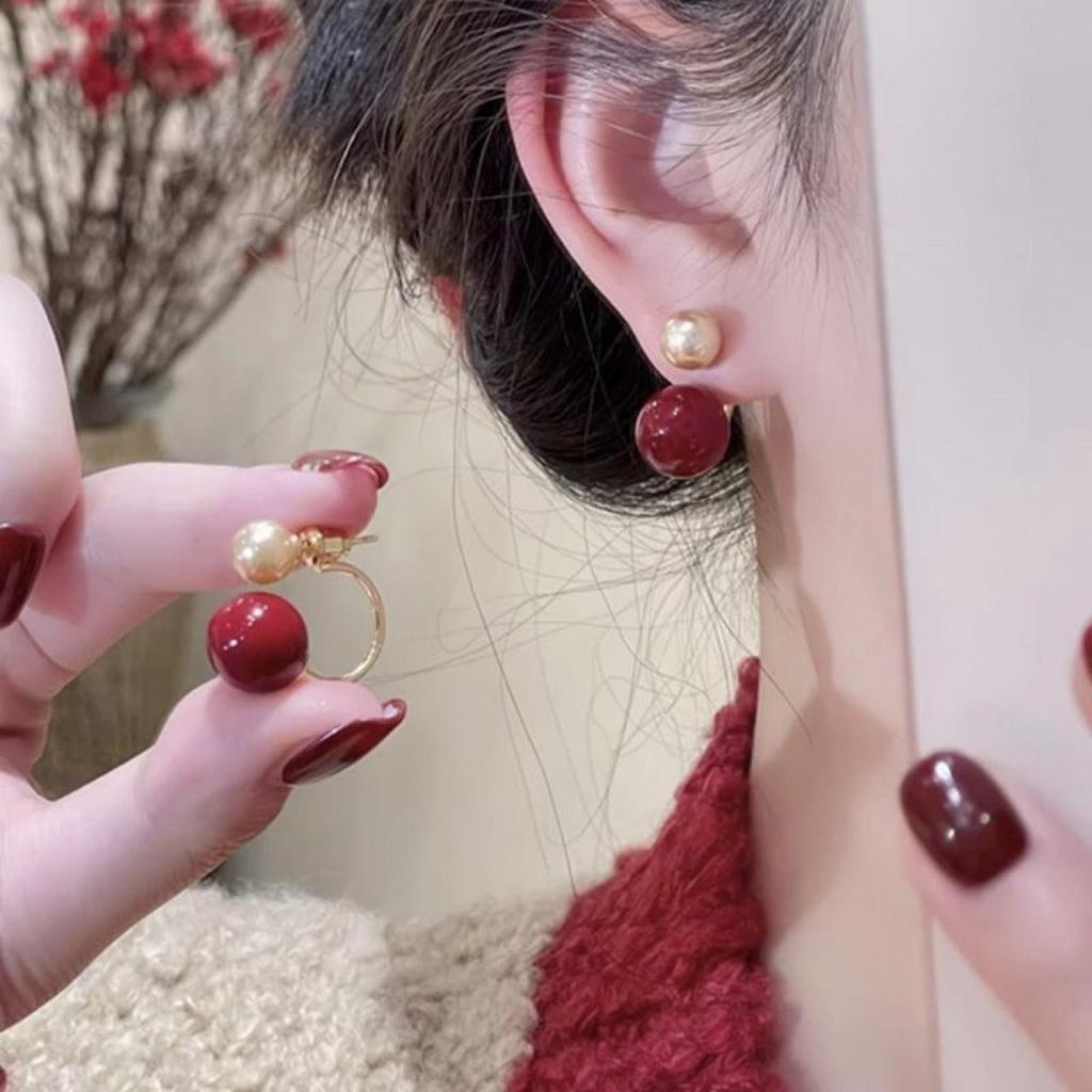 High-End 2025 Two-Way Red Bead Stud Earrings for Women - Fashionable & Versatile
