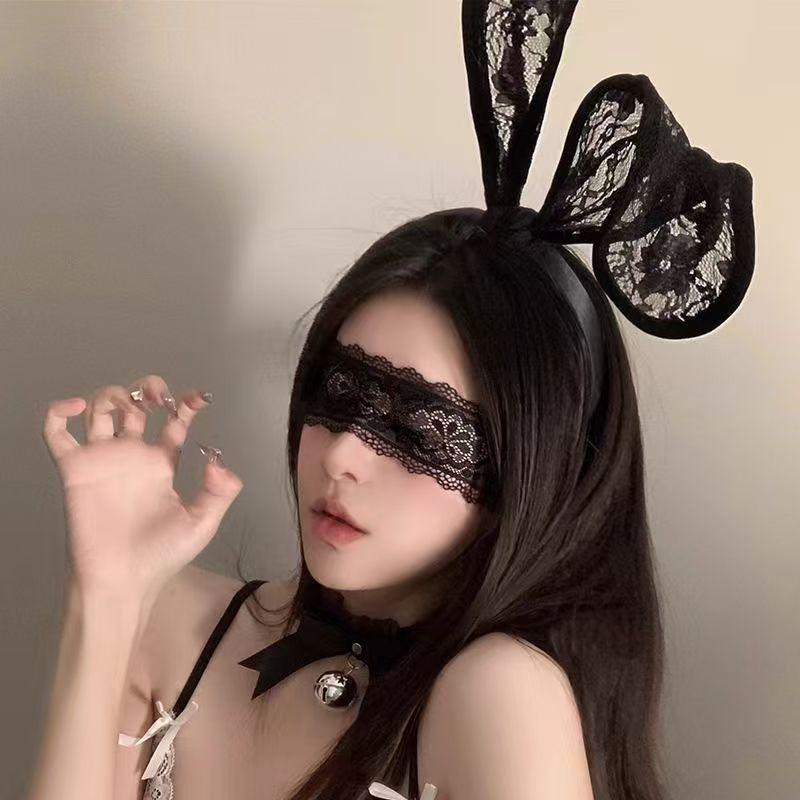 Pure Desire Lace Bunny Ear Headband & Eye Mask Set - Cute Hair Accessories for Couples