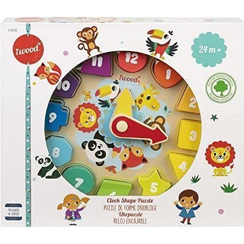 Puzzle en Bois - WDK - WDK Puzzle Horloge - Aiguilles tournantes - Diamètre 23 cm - Multicolore