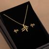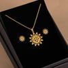 Stainless Steel Heart Necklace Set: Geometric Sunflower & Cross Clavicle Chains