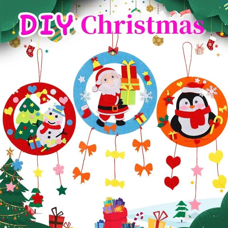 DIY Christmas Wind Chime Craft Kits Plaything Ideal for Kids Handmade Wreath Children Playthings Cartoon Windbell Hangings Stickers Gift