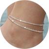 Ankle Bracelets for Women Girls Glitter Waterproof Adjustable 14K Gold Plated/ Silver Layered Anklets Beach Foot Jewerly