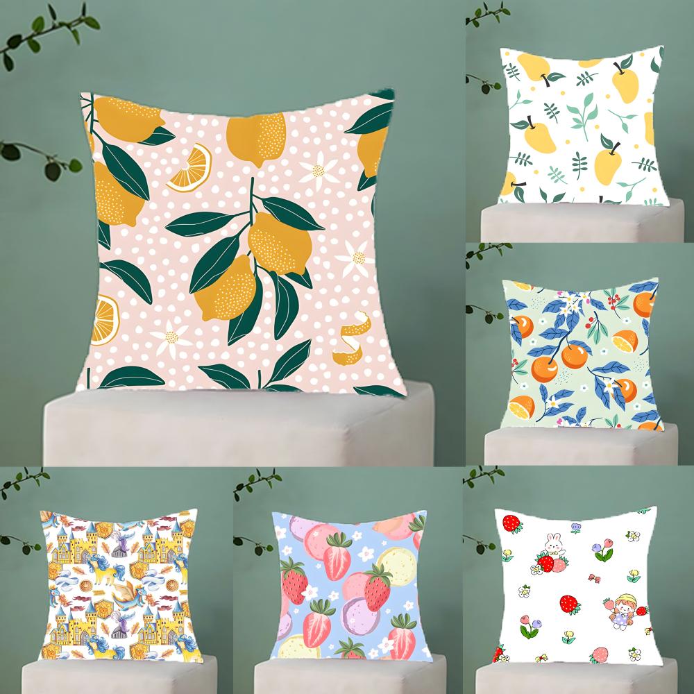 Full Print Fruit Print Pattern Pillow Case Antidustmite Pillowcase Invisible Zipper Silky Short Plush Sofa Cushion Cover