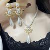 Light Luxury French Niche Retro New Design Imitation Shijia Pearl Necklace Earrings Set Chain