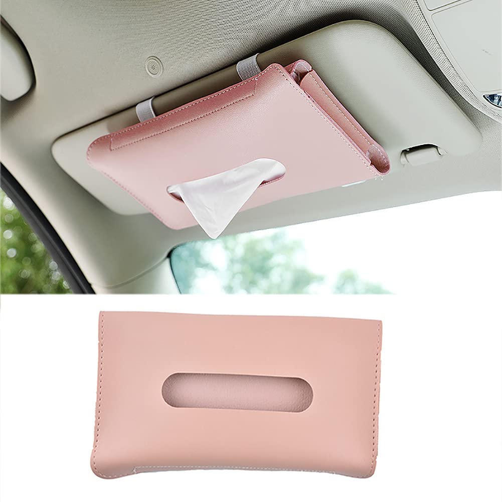 Car Visor Tissue Sun Visor Napkin Rear Seat Tissue Premium Leather Car Tissue Box Holder, Holder, Case, (Pink)