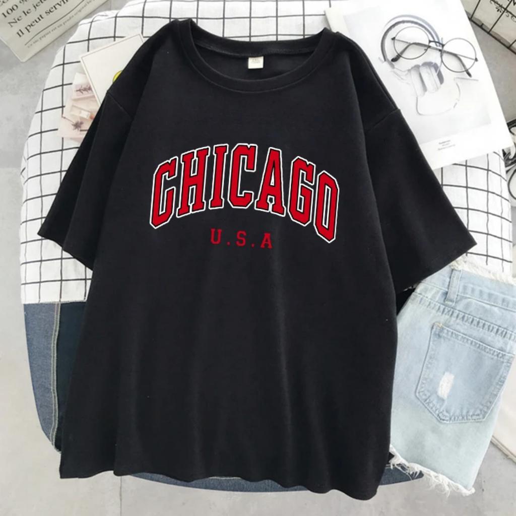 Chicago Usa City Letter Graphic Print Women T Shirt Street Summer Tshirt Casual Oversize Short Sleeve Breathable Cool T-Shirt