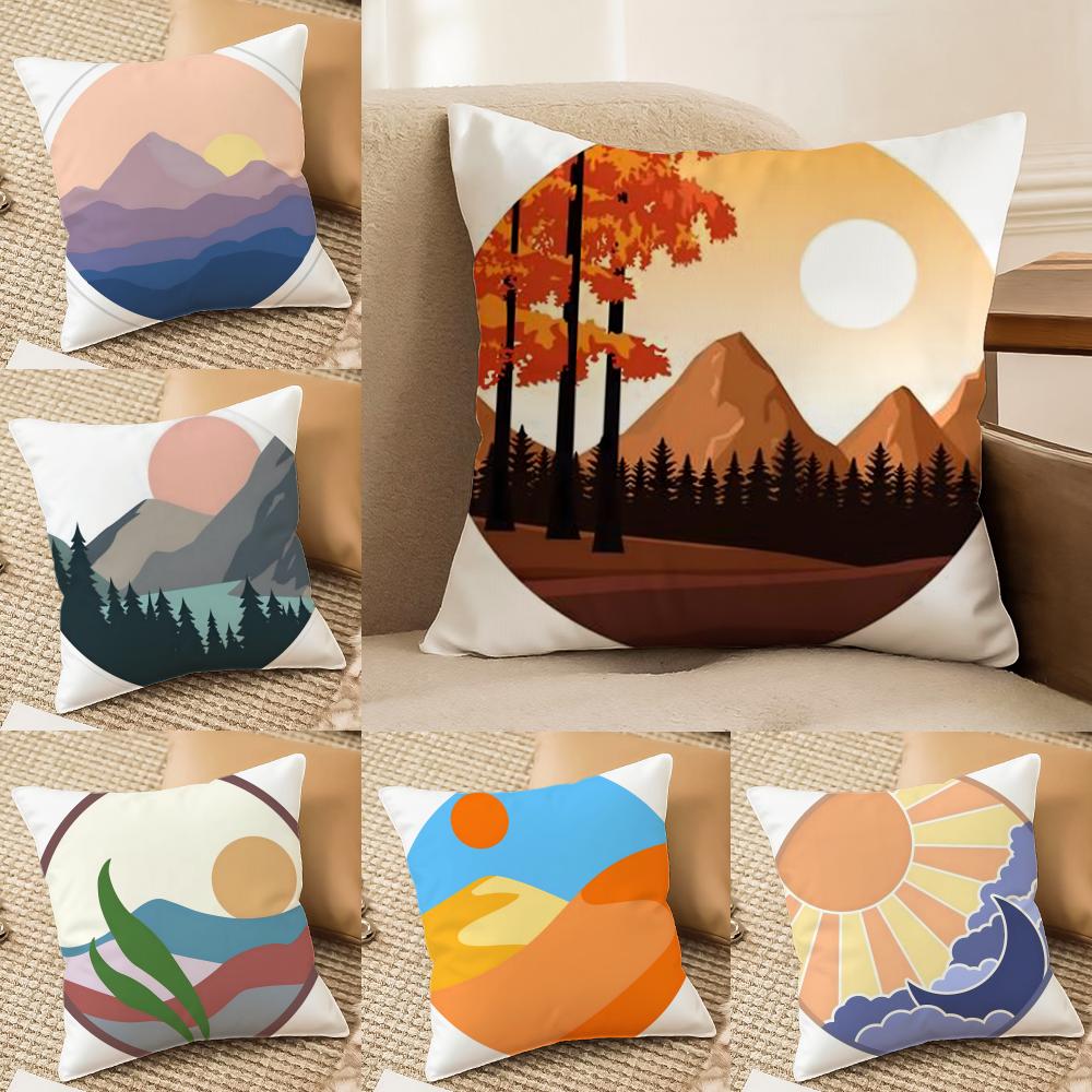 Classic Sunrise Cartoon Cushion Cover Soft Plush DoubleSided Printed Sofa Pillow Cushion Cover AllSeason Durable Decor Gift