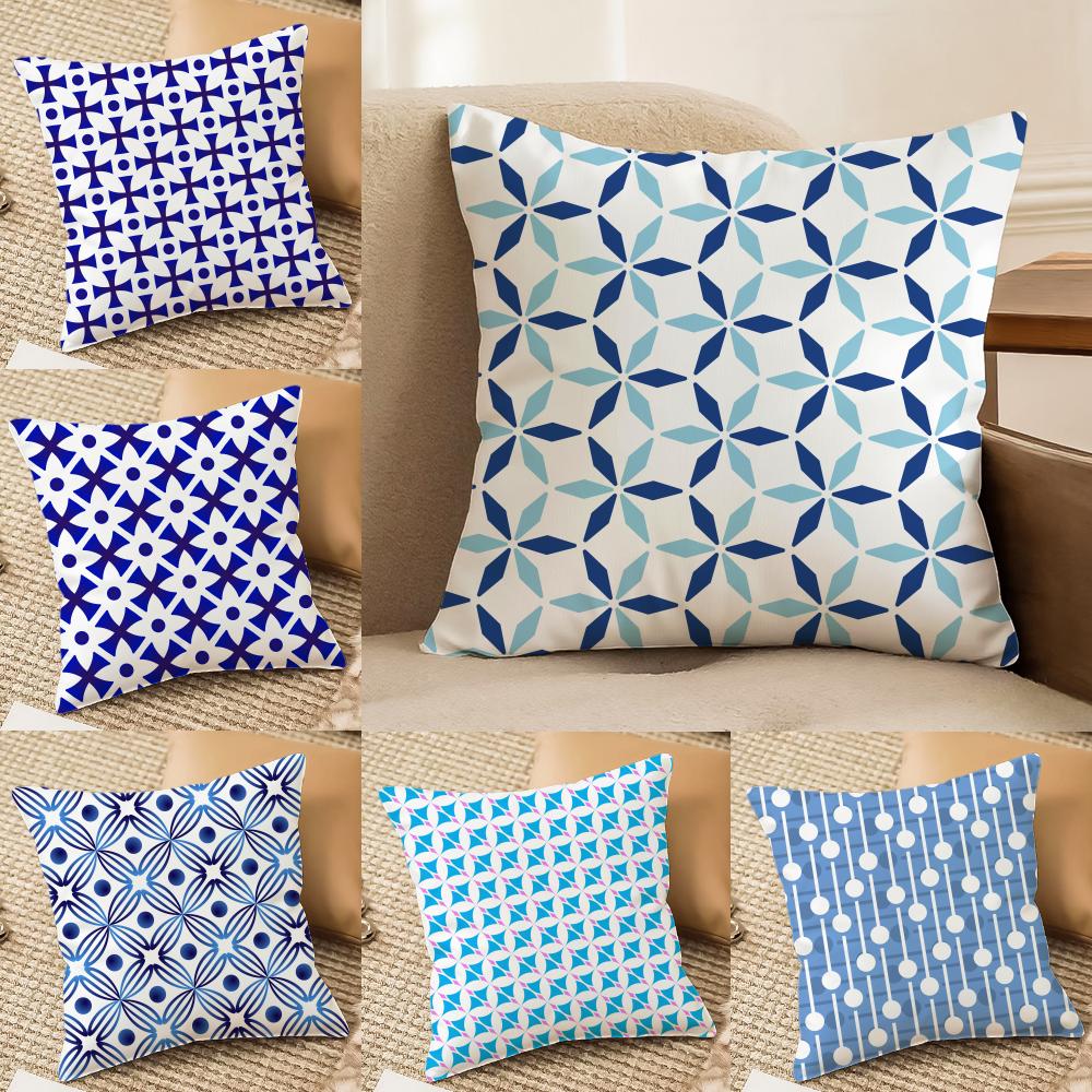 Blue and White Geometric Cushion Cover Soft Plush DoubleSided Printed Sofa Pillow Cushion Cover Cozy AllSeason Decor Gift