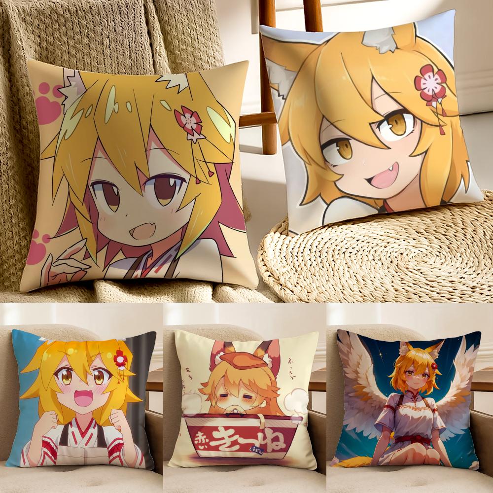Cute Japanese Anime TThe Helpful Fox Senko San Cushion Cover Pillowcase Antidustmite Living Room Sofa Decor Cushion Room