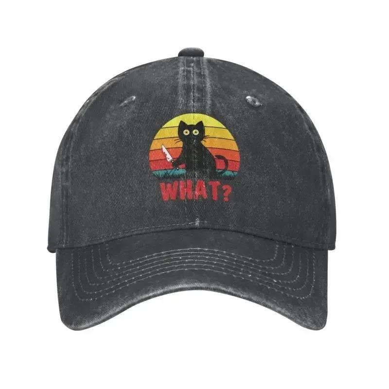 Custom Cotton Black Cat What Baseball Cap for Unisex Women Breathable Murderous With Knife Halloween Dad Hat Outdoor