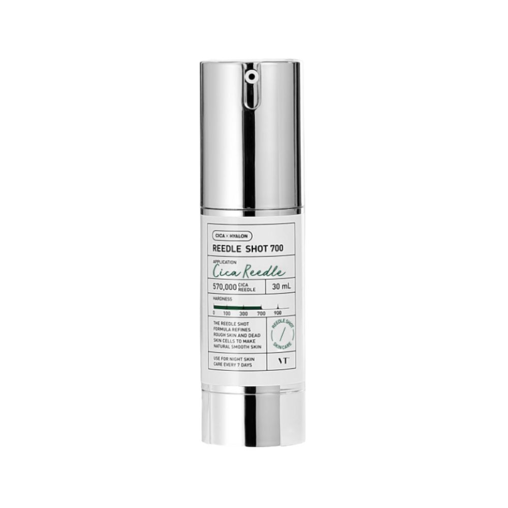 VT COSMETICS Reedle Shot 700 is an ultra-intensive skin-renewing treatment designed for those seeking professional-grade results at home. Powered by VT's advanced CICA REEDLE technology, this formula contains a high concentration of micro-sized mineral needles that create temporary micro-channels to deliver active ingredients deep into the skin's layers. This potent essence significantly accelerates natural skin turnover, refines deep-seated pore concerns, and improves overall skin texture and elasticity. Ideal for a once-a-week intensive care routine, it leaves your complexion looking visibly smoother, firmer, and more radiant with a flawless glass-skin finish.