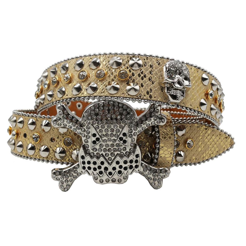 Unisex Y2K Crystal Rhinestone Skull Belt