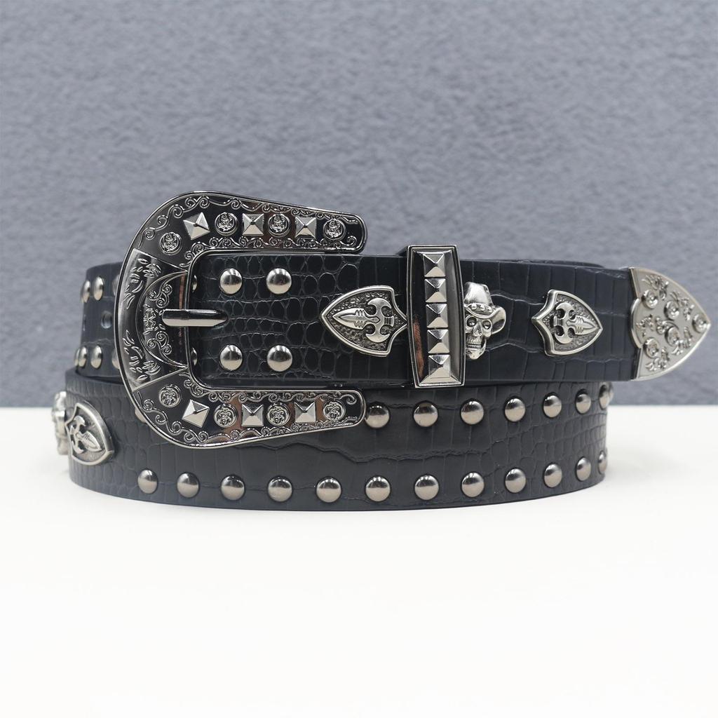 Crocodile Pattern Western Rivet Skull Leather Belt – Unisex Punk Y2K Style