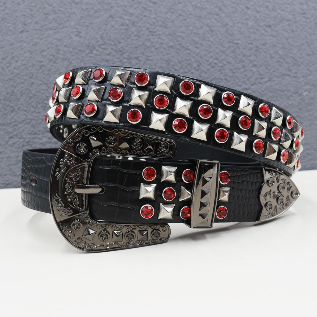 Men's High-End Rhinestone Studded Punk Leather Belt