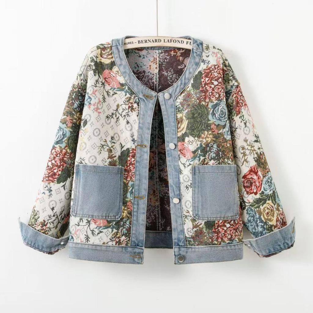 2025 Spring Petite Women's Versatile Patchwork Long Sleeve Denim Jacket