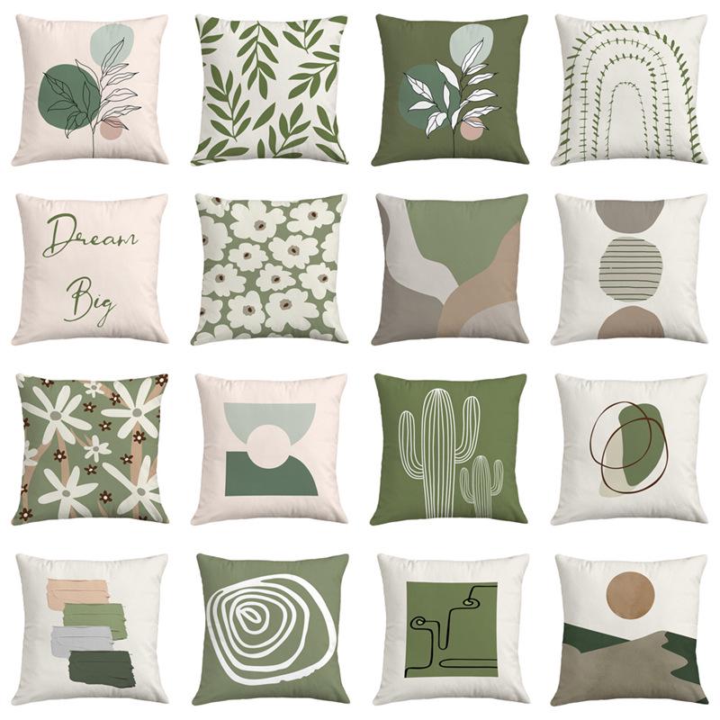 Geometric Nordic-Style Green Throw Pillow Cover for Artistic Living Room Decor